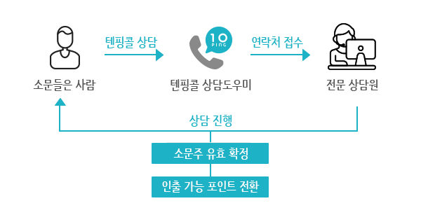 텐핑콜 상담 도우미가 소문들은 사람과 통화하여 연락처를 접수하는 새로운 서비스입니다.